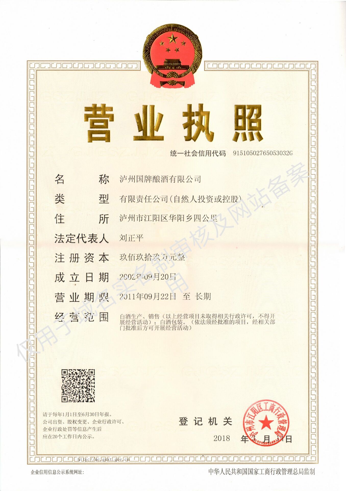 瀘州國牌釀酒有限公司坐落于北緯28度核心釀酒地域的酒城瀘州,這里氣候溫潤,四季分明,對于白酒釀造有著得天獨(dú)厚的優(yōu)勢。公司自1996年6月成立至今,始終秉承“誠信、務(wù)實(shí)”的理念,以強(qiáng)有力的質(zhì)量保證,專業(yè)的營銷策劃體系,高質(zhì)效率的營銷隊(duì)伍,真誠快速的售后服務(wù)迅速發(fā)展。如今,瀘州國牌釀酒有限公司分別建立石嶺老窖池釀酒基地(原瀘州市嘉裕酒廠)、游灣灌裝及濃香型釀酒基...